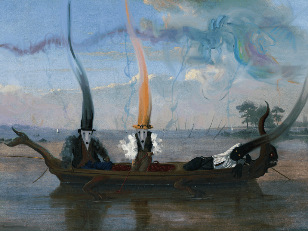 This work is a version of «Fishing Party on Long Island Sound off New Rochelle», 1847 by James Goodwyn Clonney.